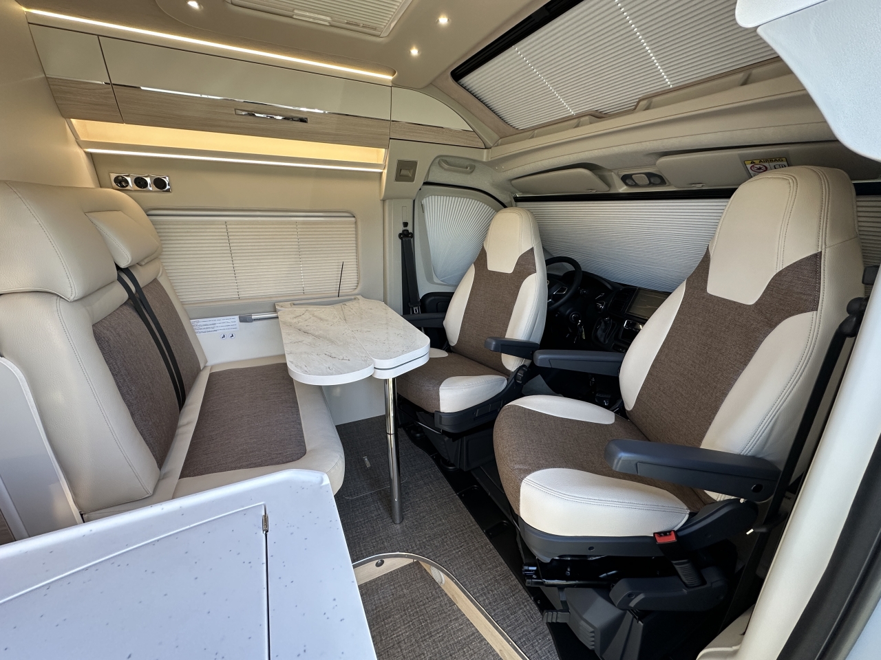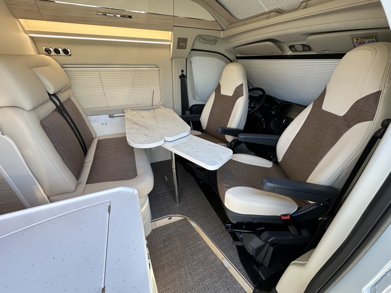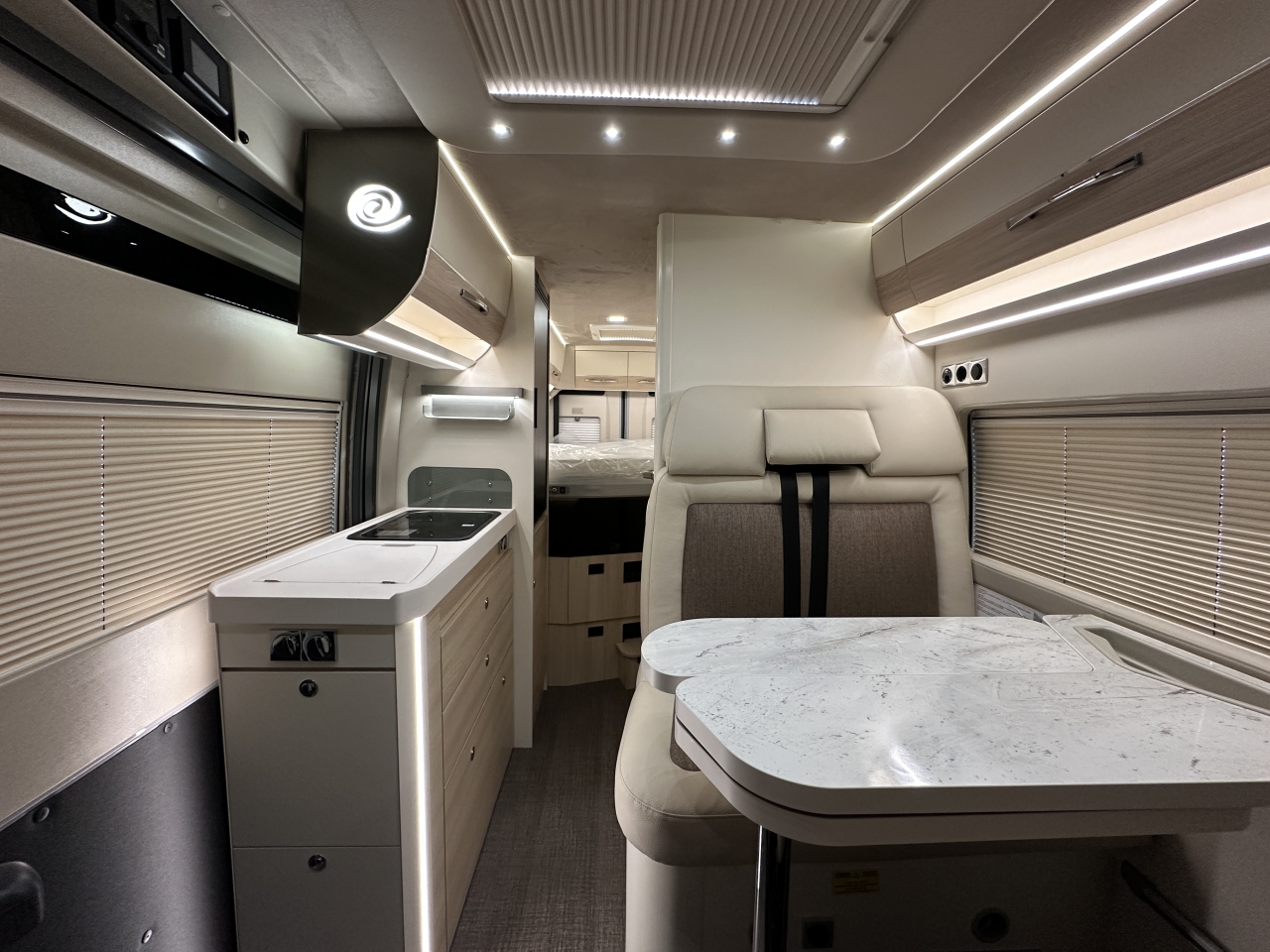 Elektrická parkovací brzda, bezklíčový vstup a start, sedadla typu kapitánské křeslo, systém Traction+ včetně sjíždění svahu, rádio včetně přípravy pro ovládání na volantu, zadní kamera, panoramatická střecha „Skyroof“, manuální zatemňovací systém kabiny řidiče, moskytiéra pro posuvné dveře, příprava pro solární panely, nárazníky lakované v barvě karoserie, černý ochranný kryt podvozku, mlhová světla včetně přisvícení do zatáček, ovládání na volantu, anténa DAB+ v zpětném zrcátku, kožený volant, chromované větrací otvory, 16" kola z lehkých slitin, automatická klimatizace, indukční nabíjecí stanice, lithiová baterie 100 Ah, solární panely, 7" digitální přístrojový panel, paket asistenčních systémů řidiče, paket asistenčních systémů řidiče Plus, podvozek 40H, automatická převodovka, barva exteriéru Lanzarote Grey, markýza, černá výsuvná střecha