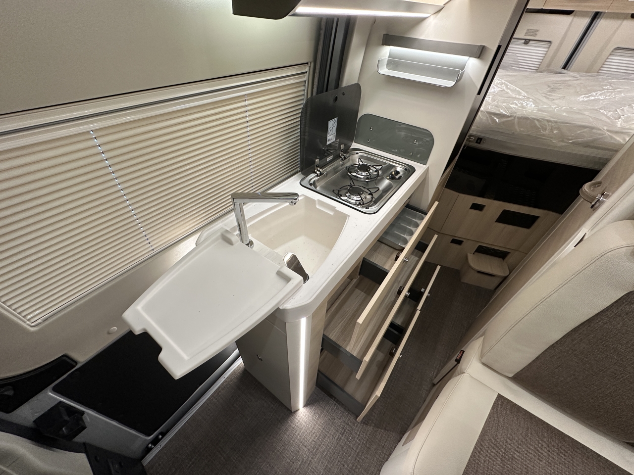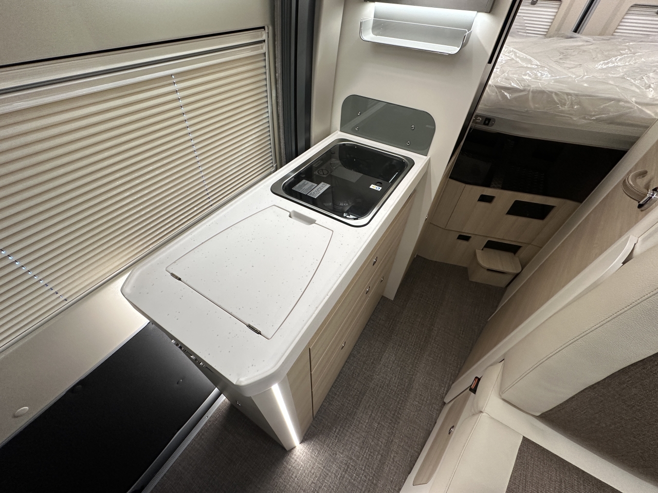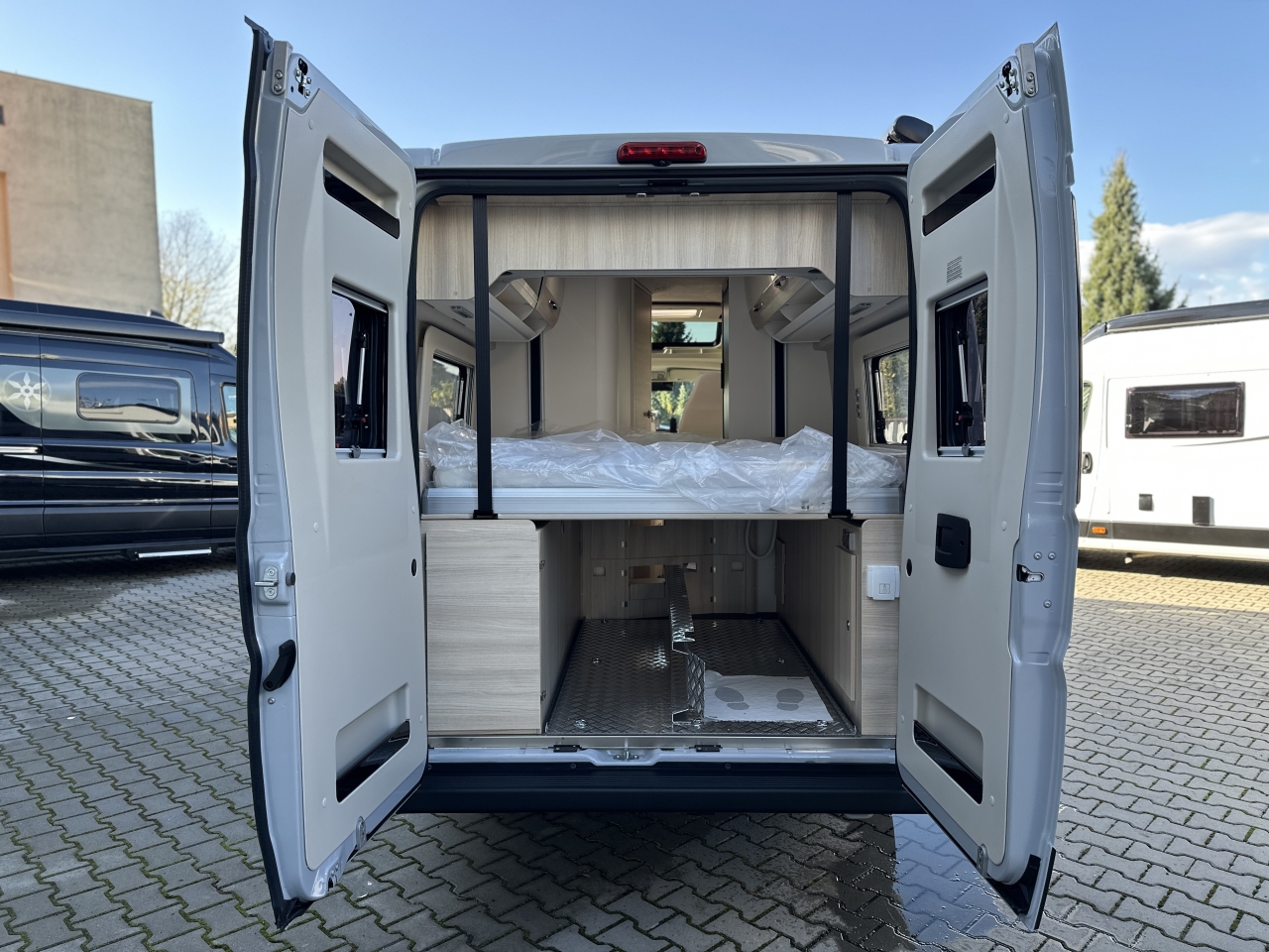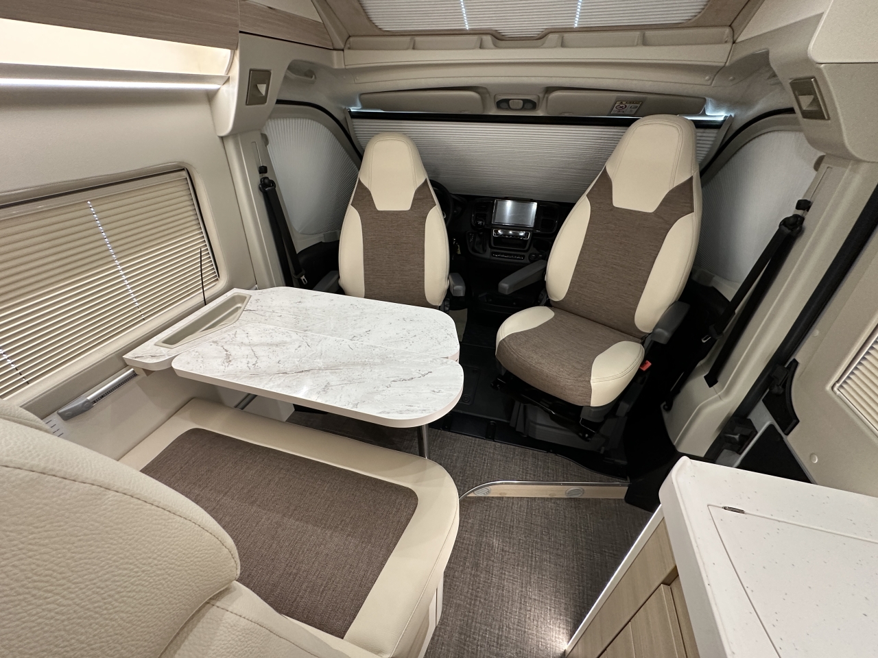 Elektrická parkovací brzda, bezklíčový vstup a start, sedadla typu kapitánské křeslo, systém Traction+ včetně sjíždění svahu, rádio včetně přípravy pro ovládání na volantu, zadní kamera, panoramatická střecha „Skyroof“, manuální zatemňovací systém kabiny řidiče, moskytiéra pro posuvné dveře, příprava pro solární panely, nárazníky lakované v barvě karoserie, černý ochranný kryt podvozku, mlhová světla včetně přisvícení do zatáček, ovládání na volantu, anténa DAB+ v zpětném zrcátku, kožený volant, chromované větrací otvory, 16" kola z lehkých slitin, automatická klimatizace, indukční nabíjecí stanice, lithiová baterie 100 Ah, solární panely, 7" digitální přístrojový panel, paket asistenčních systémů řidiče, paket asistenčních systémů řidiče Plus, podvozek 40H, automatická převodovka, barva exteriéru Lanzarote Grey, markýza, černá výsuvná střecha