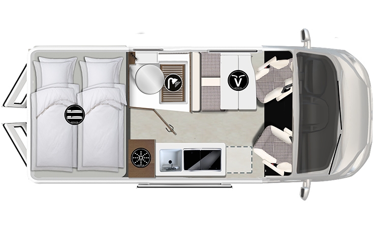 • Zadní dvoulůžko: 186 cm x 144 cm