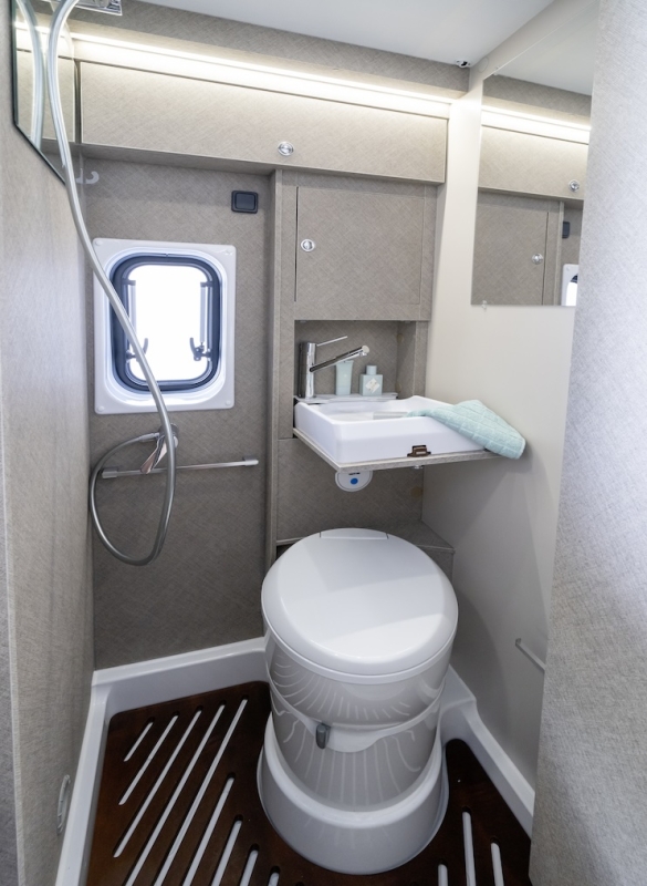 • Kazetová toaleta s integrovaným sprchovým koutem
