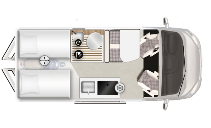 • Zadní dvoulůžko: 1 x 190 cm x 160 cm
