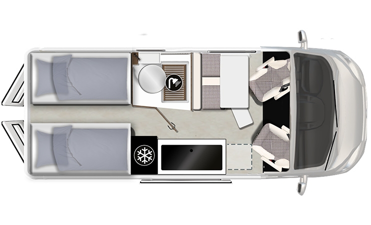 • Lůžko ve výklopné střeše: ( VOLITELNÉ ZA PŘÍPLATEK 188 x 75 cm )