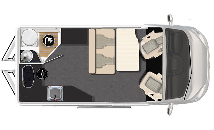 • Dvoulůžko v jídelní části : 190 cm x 122 cm