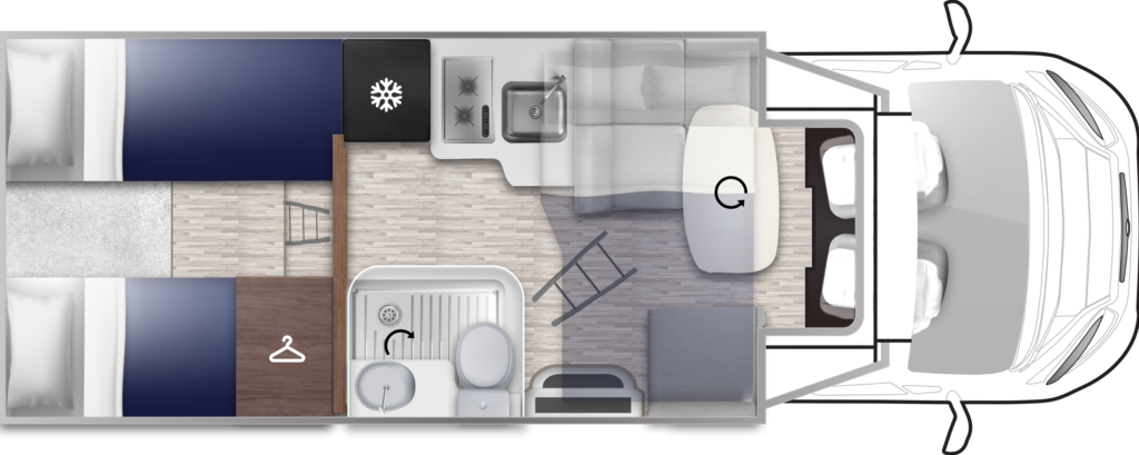 - Zadní lůžko: 80x193 + 80x200 (možnost rozšíření 199x212) cm