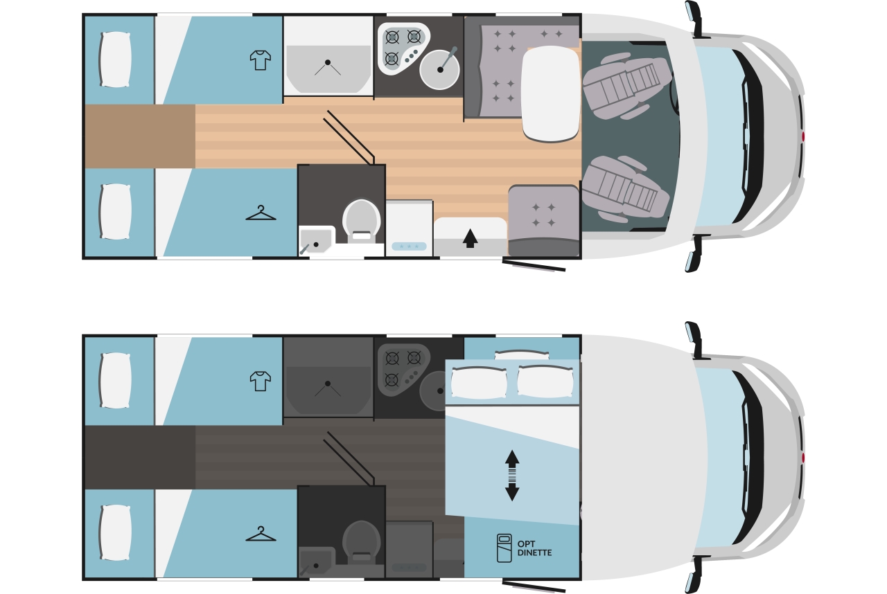 - Zadní lůžko: 75 x 182 + 75 x 194 cm